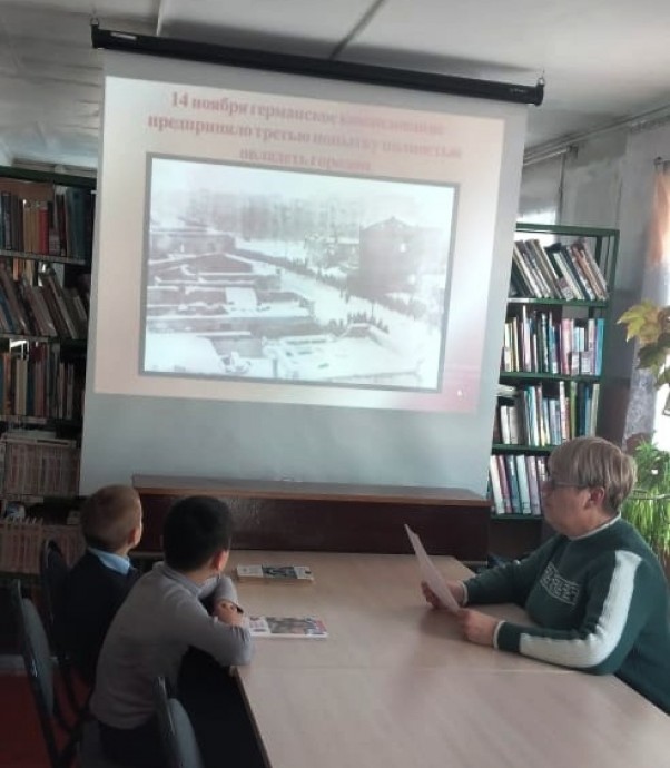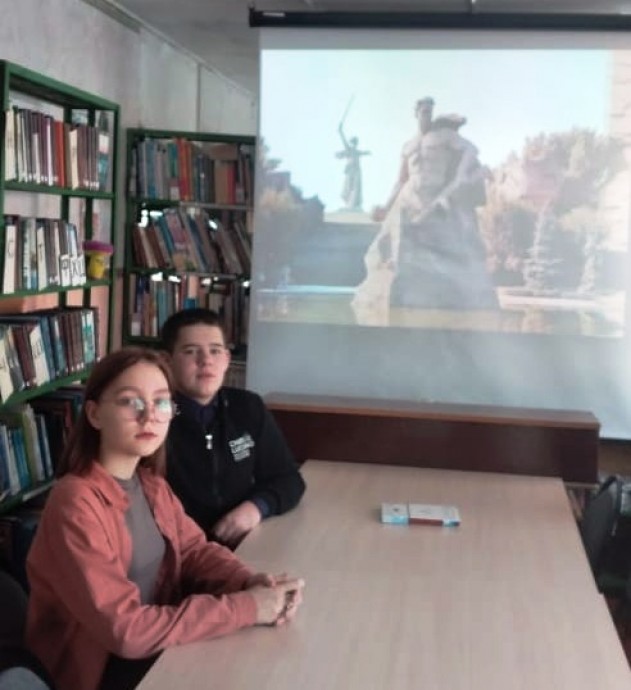 Фадеева Александра прочитала отрывок из книги Геннадия Гончаренко «Битва на Волге ». Заведующая ЦДБ Э. А. Колганова прочитала рассказ С. Алексеева «Победа под Сталинградом». Мероприятие сопровождалось презентацией «200 дней мужества» и аудиозаписью песен «Мамаев курган » и «На Мамаевом кургане тишина».