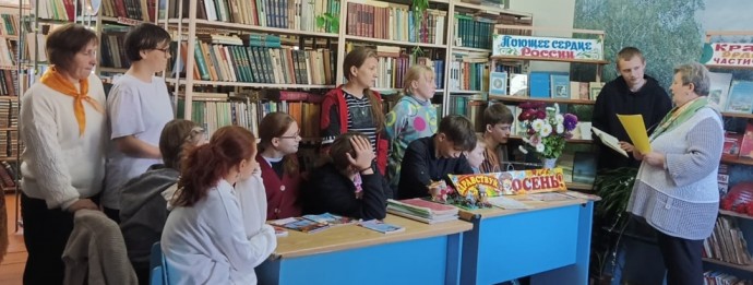 Заведующая Голунской сельской библиотекой Г.Н. Лихарева провела для обучающихся МБОУ Голунская СОШ час поэзии «Поющее сердце России».