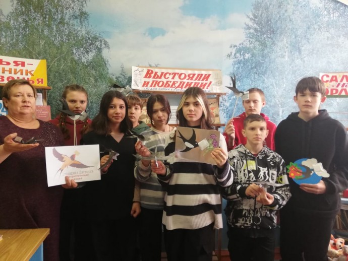 В ходе встречи ребята познакомились с героическим сопротивлением наших войск под Ленинградом, прослушали стихотворение Ольги Берггольц «Блокадная ласточка», узнали, что ласточка – живой символ надежды блокадного города. Этот знак стал ответом на заявление фашистов о том, что теперь в город даже птица не пролетит.