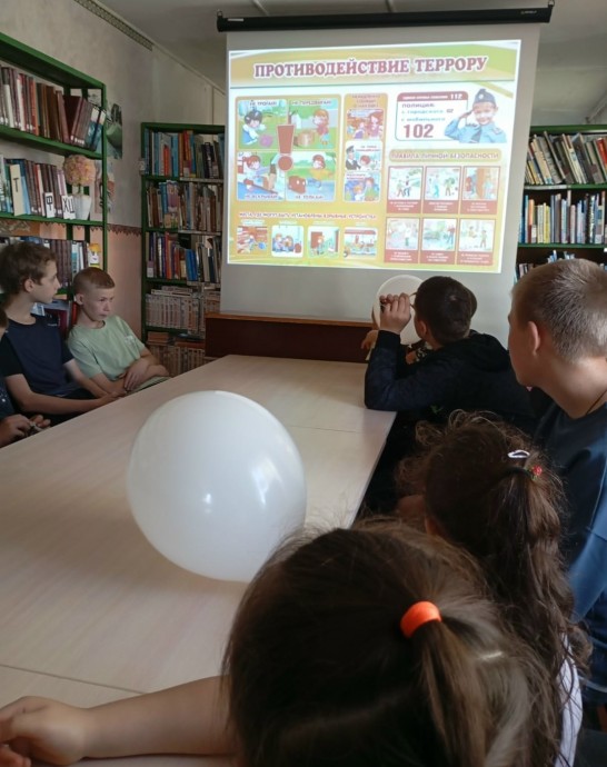В Новосильской центральной детской библиотеке прошел библиотечный урок «Дети говорят террору НЕТ!» для детей-получателей социальных услуг и специалистов отделения социальной помощи и срочных социальных услуг БУООКЦСОН Новосильского района. Это был серьёзный откровенный разговор о том, как сохранить свою жизнь и жизнь родных и близких людей от жестокости, хитрости, бездушия террористов. Из мультимедийной презентации, подготовленной работниками Центральной детской библиотеки, ребята узнали о ситуациях, при которых возможно совершение террористического акта, о последствиях и жертвах, о правилах поведения в таких случаях. Ознакомились с Памяткой «Нет терроризму!» и посмотрели видеоролик МЧС России «Зина, Кеша и террористы».