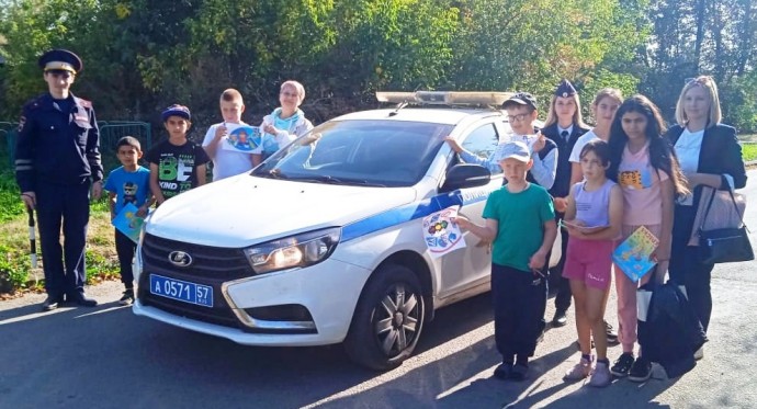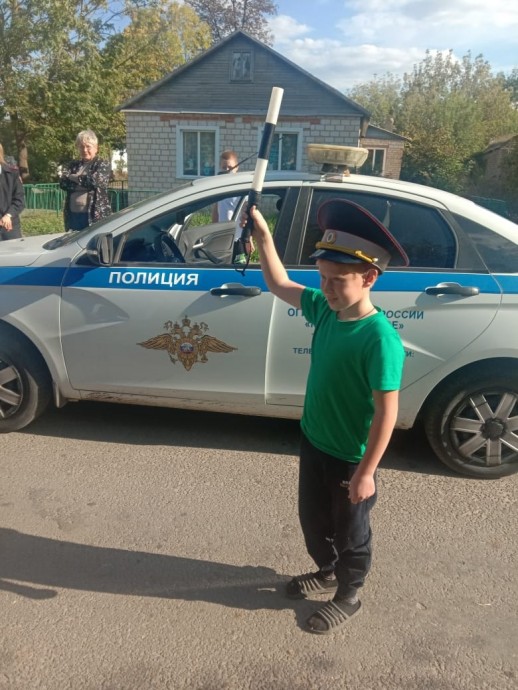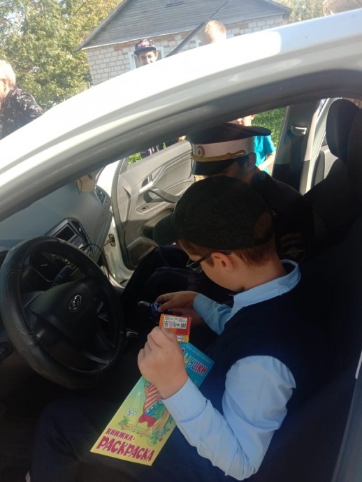 А практическая часть нашей встречи была самой увлекательной! Ребята получили уроки регулировки жезлом, осмотрели салон служебного автомобиля, закрепили полученные знания, переходя дорогу по нерегулируемому пешеходному переходу.На память о встрече ребята и гости получили подарки.