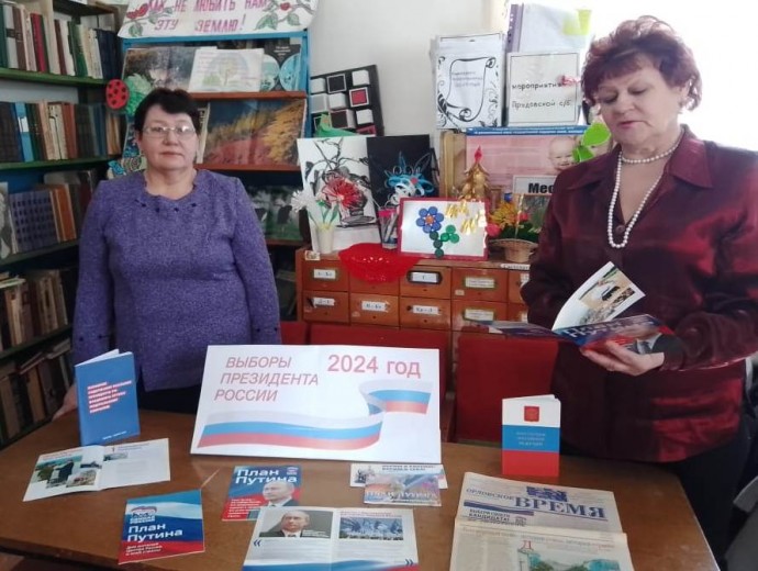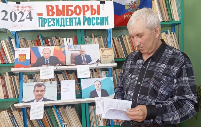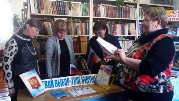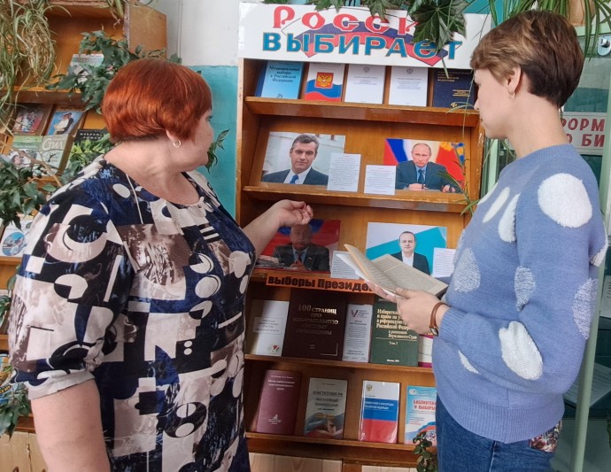 У выставок проходят правовые часы и индивидуальные беседы, в том числе и с участием Председателя ТИК Новосильского района: «Твой голос нужен России!», «Россия голосует», «Твой выбор – твое будущее», «Твой голос нужен России!», «История президентства в России», «Голосуем за будущее России» «Выбираем достойного Президента». А заведующая Селезневской сельской библиотекой – еще и Председатель УИК.Участие в выборах – это проявление активной гражданской позиции и показатель высокой политической культуры человека. Сделать выбор – значит взять на себя ответственность не только за свое будущее, но и за будущее своей страны. Приходите на выборы, ваш голос нужен России!