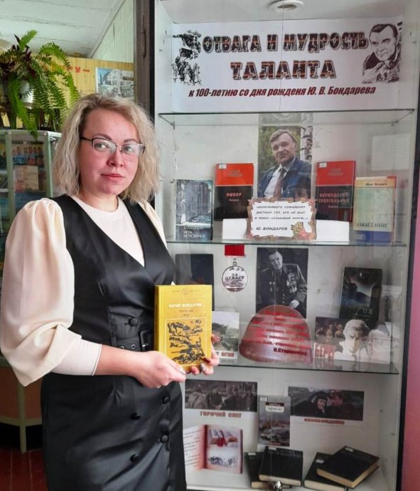 Война оставила глубокий след в душе писателя, который своим творчеством пытался сохранить память о погибших. Большинство произведений Бондарева связаны с военной тематикой. Наиболее пронзительными из них стали «Батальоны просят огня», «Горячий снег», «Последние залпы», «Юность командиров», «Берег». Эти и другие произведения Бондарева, хорошо известные современному читателю, желающему познать «жестокую правду о войне», представлены на книжных выставках «Отвага и мудрость таланта», «Патриот Отечества» и «Горячий снег памяти», действующих в Новосильской центральной библиотеке, Чулковской и Прудовской сельских библиотеках, где прошли и литературные часы с теми же названиями.