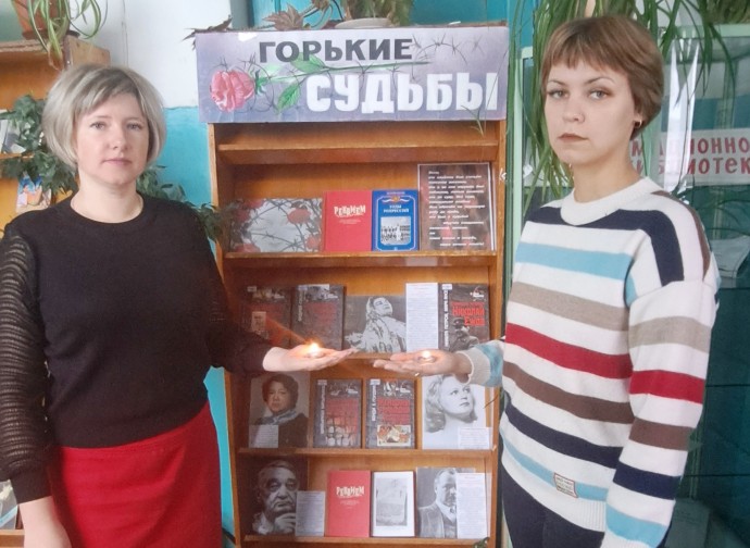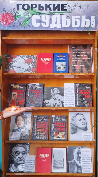 Работники ММБУК «Новосильская ЦБС» не остались в стороне. На вечере-реквиеме «Без вины виноватые» заведующая Чулковской сельской библиотекой Васильчикова Л.А. рассказала о тяжелом и суровом времени, о людях, прошедших через репрессии, о писателях и поэтах, которые сами побывали в жерновах репрессий, а потом написали об этом книги. Книжная выставка, на которой представлена литература, рассказывающая об этой трагической странице в истории нашей страны и обзор литературы «Горькие судьбы» были организованы в центральной библиотеке.