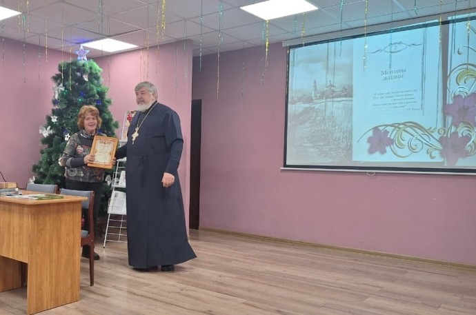 Со словами благодарности за служение во славу малой родины выступил Благочинный Новосильского благочиния, настоятель Свято-Никольского храма, протоиерей Василий Сорока. Он вручил В.И. Корневой Грамоту Благочинного Новосильского благочиния за весомый вклад в приумножение духовных ценностей и во благо Святой церкви, за духовно-патриотическое воспитание жителей Орловской области и Новосильского района.
