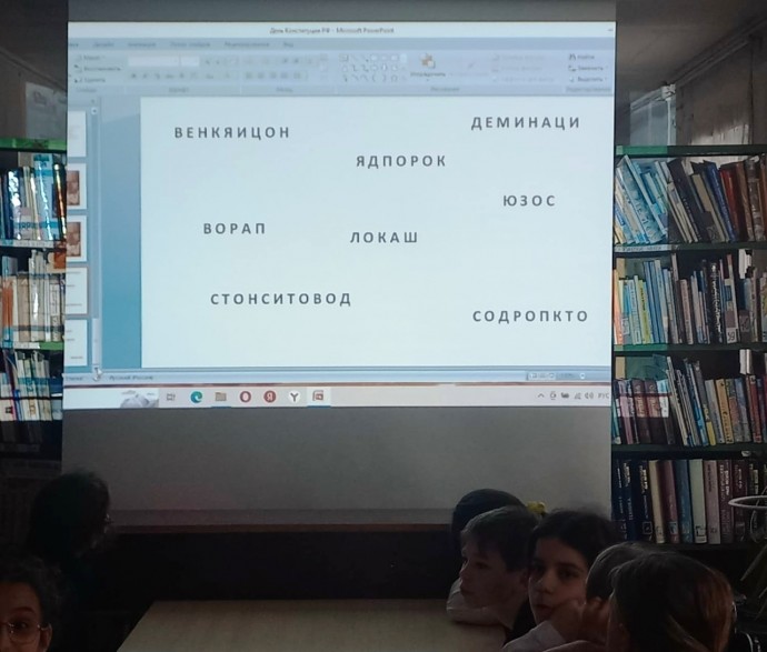 Библиотечный урок «Конституция — закон, по которому живем» в Новосильской центральной детской библиотеке для обучающихся 5А и 5В классов МБОУ Новосильская СОШ провели наши гости, Карпикова Мария и Половинкин Александр из Орловской областной специальной библиотеки для слепых им. А.Г. Абашкина.Они рассказали ребятам об истории возникновения праздника, об основных статьях Конституции, в которых закреплены права и обязанности граждан РФ. Ребята с удовольствием участвовали в интеллектуальной игре «Знатоки права» и викторине «Конституция для сказочных героев».