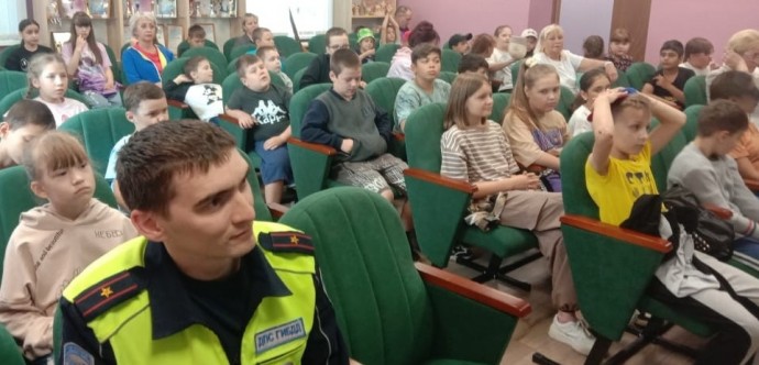 Поэтому тема нашего сегодняшнего разговора с воспитанниками летнего оздоровительного лагеря «Солнышко» при МБОУ Новосильская СОШ — «Мое безопасное лето». На мероприятие были приглашены: начальник отделения госавтоинспекции МО МВД РФ «Новосильское» А.А. Каратеев и начальник отделения надзорной деятельности и профилактической работы по Корсаковскому и Новосильскому районам. И.И. Минаков. Ребята вспомнили, повторили Правила дорожного движения, Правила поведения во время отдыха на водоеме, правила поведения в парке и лесу, правила поведения при солнечном ударе, при грозе, при укусе клеща, при пожаре, при обнаружении постороннего сомнительного предмета, правила безопасности, чтобы не стать жертвой мошенников. И самое главное правило, которое усвоили дети — при любой чрезвычайной ситуации ПОЗВОНИ РОДИТЕЛЯМ, а затем по номеру «112». Второе правило: выучи свой домашний адрес, номер телефона и место работы родителей. Рассказ гостей и ведущих — работников ЦДБ сопровождался красочной презентацией, показом мультфильмов из цикла «Смешарики» о ПДД и библиографическим обзором книг: Воронина, Д. «Опасные забавы», «Уголовный кодекс в картинках» и «Безопасный переход — книгой, подаренной Новосильской центральной детской библиотеке А.А. Коротеевым.