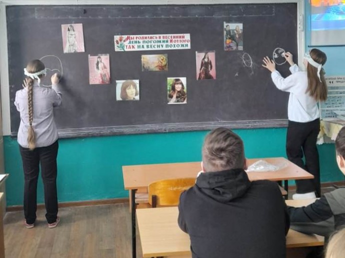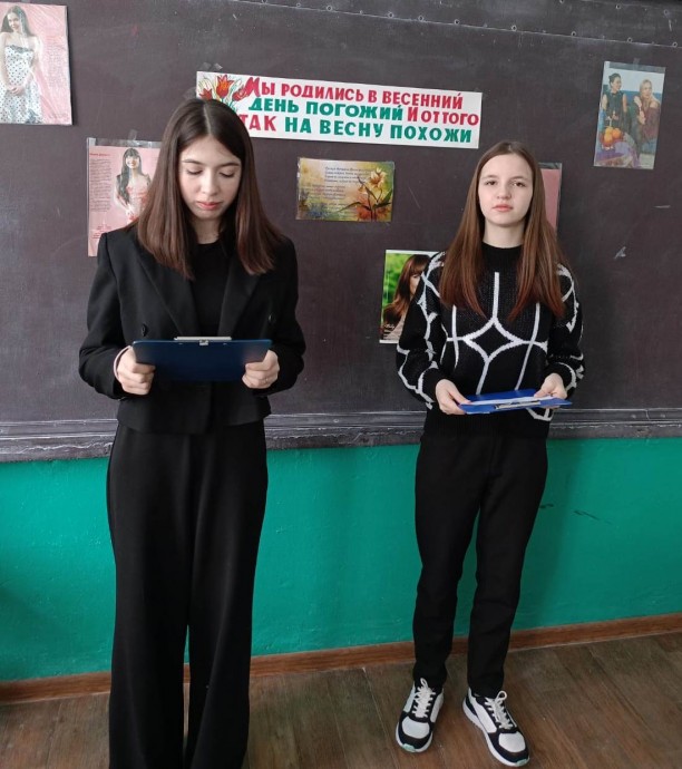София Исаева, Дарья Лукашина, Сергей Быковский, Петр Лякишев и Дарья Полухина прочитали стихотворения о представительницах прекрасного пола. Затем школьники с удовольствием отвечали на вопросы викторины, принимали участие в различных конкурсах, которые создали праздничную атмосферу и подарили хорошее настроение участникам мероприятия.