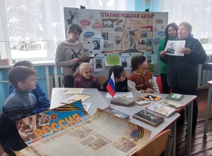 В библиотеках Новосильского района прошли мероприятия: час памяти «Нам подвиг Сталинграда не забыть» (Селезневская сельская библиотека), историко-патриотический час «Ты выстоял, великий Сталинград!» (Голунская сельская библиотека), час мужества «Сталинград – гордая память истории» (Прудовская сельская библиотека), урок мужества «Ты выстоял, великий Сталинград!» (Чулковская сельская библиотека), патриотический час «Сталинград: 200 дней и ночей» (Воротынцевская сельская библиотека).