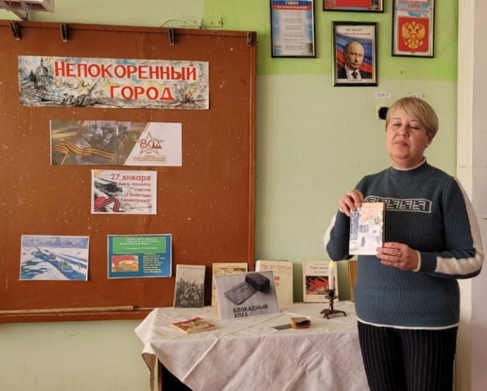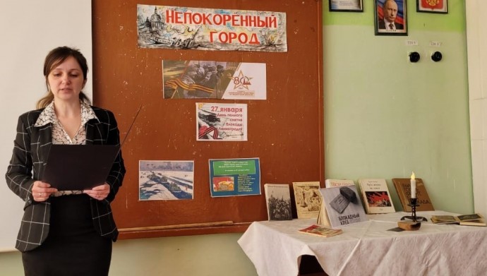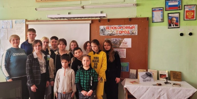 Новосильская центральная детская библиотека присоединяется к Акции.22 января ЦДБ совместно с Новосильским районным краеведческим музеем провели Урок Памяти «Непокоренный город» для обучающихся МБОУ Глубковская СОШБлокада Ленинграда длилась 872 дня. По разным подсчетам, погибло от 600 тысяч до 1,5 миллиона человек — и абсолютное большинство из них умерли от голода. Участники Акции узнали о блокадном хлебе, о героической обороне Ленинграда не только воинами, но и жителями города; о «Дороге Жизни» — единственном пути на Ладожском озере, по которому доставлялись продовольствие, медикаменты, необходимые предметы в Ленинград; о дневнике Тани Савичевой. Этот дневник 11-летней школьницы стал одним из самых страшных свидетельств ужасов войны. Эти записи девочка вела во время блокады Ленинграда в 1941 г., когда голод каждый месяц уносил из жизни ее близких. Всего девять страниц, на которых Таня немногословно сообщает о гибели родных людей, стали настоящей летописью смерти. Дневник Тани Савичевой был предъявлен на Нюрнбергском процессе в качестве доказательства преступлений фашизма.Ребята посмотрели видеоролики о событиях тех военных лет, прослушали библиографический обзор книг, представленных на выставке, почтили память погибших Минутой молчания.
