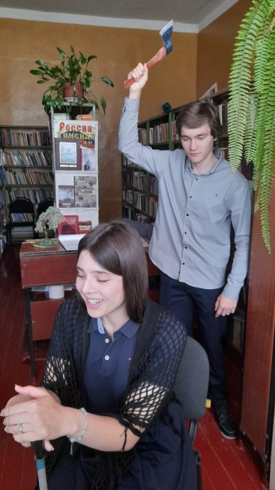 Следующее задание было поделено на 2 части: одна команда получила набор эпиграфов и вспоминала, в каком произведении его встречала. Вторая команда должна была по стихотворению, написанному искусственным интеллектом, найти начальные строки произведений. Далее библиотекари предложили еще больше погрузиться в мир классической русской литературы и вспомнить самые яркие цитаты из культовых произведений, ведь все мы иногда произносим их в жизни, не задумываясь, откуда они. Представители команд получили цитату из классической литературы и должны были представить своей команде театральный показ так, чтобы команда её отгадала. И они достойно с этим справились, убедительно и узнаваемо представив культовые фразы из романов «Преступление и наказания» Ф.М. Достоевского и «Двенадцать стульев» И.Ильфа и Е.Петрова.А пока ребята готовились, остальные члены команды участвовали в конкурсе «Литературные пары», которые должны были составить из набора фотографий, по возможности назвав автора и произведение.