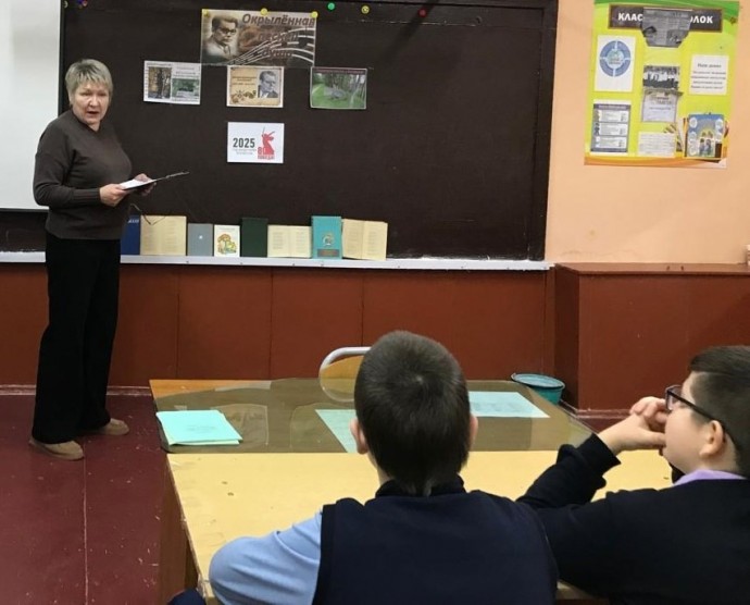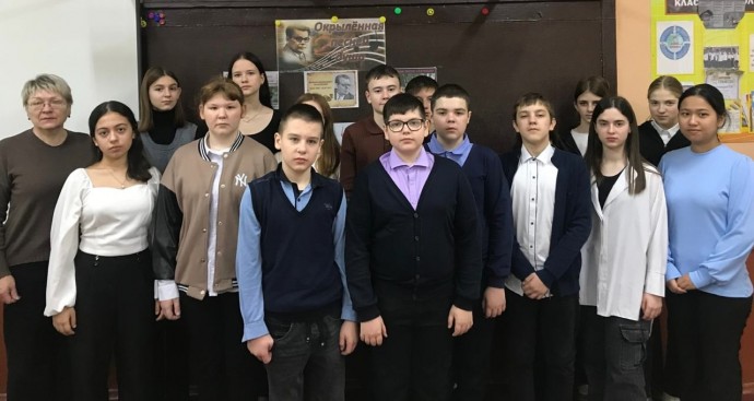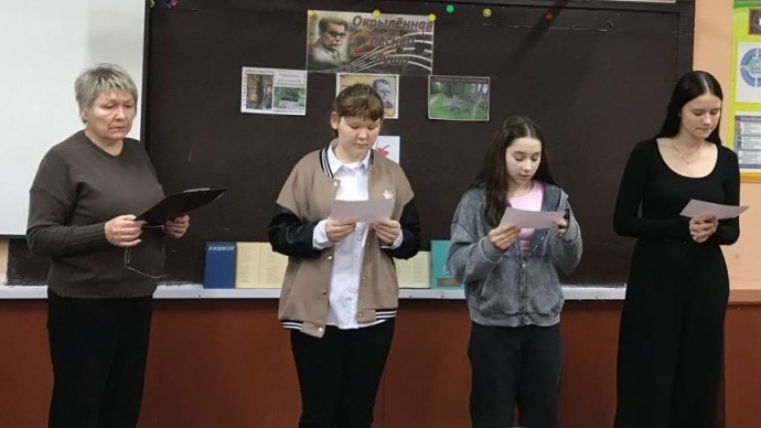 Работники Новосильской центральной детской библиотеки вместе с обучающимися 7В класса МБОУ Новосильская СОШ (классный руководитель Г.А. Зубова) открыли Год защитника Отечества библиотечным уроком «Окрылённая песней душа», приняв участие в Межрегиональном литературно-музыкальном марафоне «День поэта», посвящённом 125-летию со дня рождения М. В. Исаковского и 80-летию Победы в Великой Отечественной войне 1941-45гг.Организатор Марафона – Государственное бюджетное учреждение культуры «Смоленская областная библиотека для детей и молодёжи имени И. С. Соколова-Микитова».
