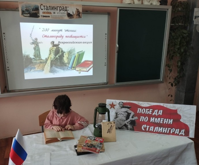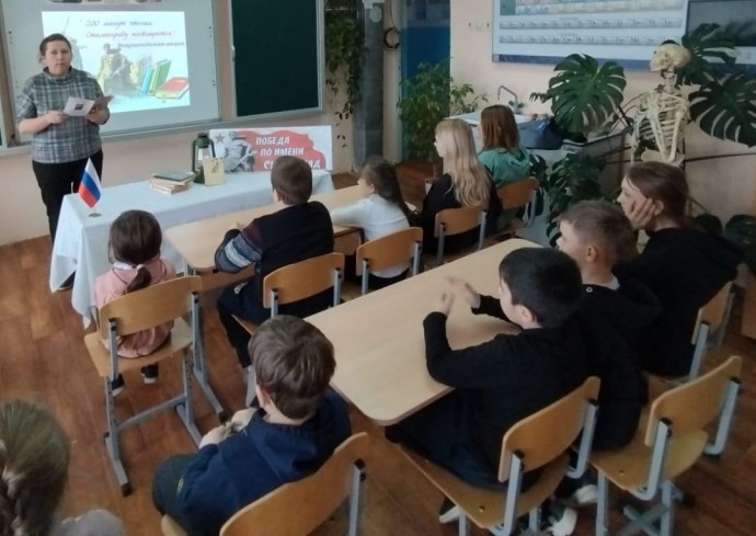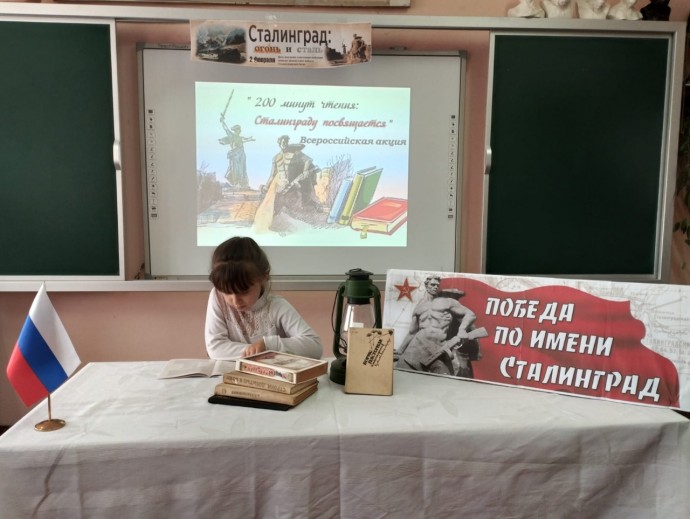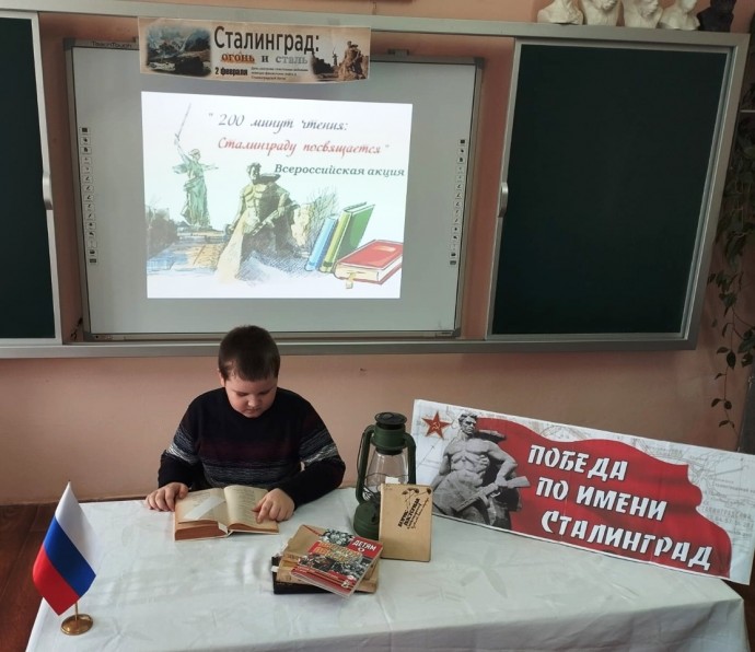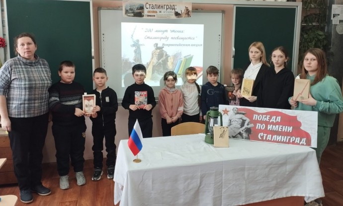 Заведующая СБ Светлана Васильевна Терехова провела урок мужества «От Сталинграда к великой Победе» для учащихся 1 и 6 классов Селезнёвской СОШ. Читали стихотворения Б.Пастернака «Ожившая фреска»; С. Маршака «Маленький сталинградец» и «В плен!»; К.Симонова «У огня»; А.Твардовского «Я убит подо Ржевом»; В.Поляниной «Сталинградский котёл»; Ю. Визбора «Медаль Сталинграда».