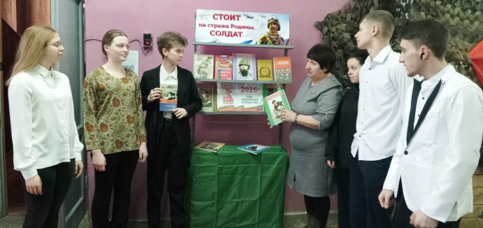 В Новосильской центральной библиотеке действует книжная выставка «Отчизны гордость боевая», в фойе центрального Дома культуры работники центральной библиотеки организовали выставку «Стоит на страже Родины солдат». У выставок проходят индивидуальные и групповые беседы. Также работники центральной библиотеки дополнили праздничный концерт в центральном Доме культуры красочной и торжественной видео презентацией. Накануне Дня Защитника Отечества работники центральной библиотеки организовали тематический вечер «Достойные потомки великой страны» для учащихся 7-х классов Новосильской средней школы. Ребятам рассказали о русской воинской доблести, о том, что служить на благо родной страны, оберегать ее – это гражданский долг, почетная обязанность и важный вклад в общее благородное дело укрепления нашего государства, обеспечения свободы и независимости России. Из конкурсно-игровой программы ученики узнали, что мужество, стойкость и самоотверженность испокон веков были символами российского воинства, являясь основой блестящих побед русского оружия.