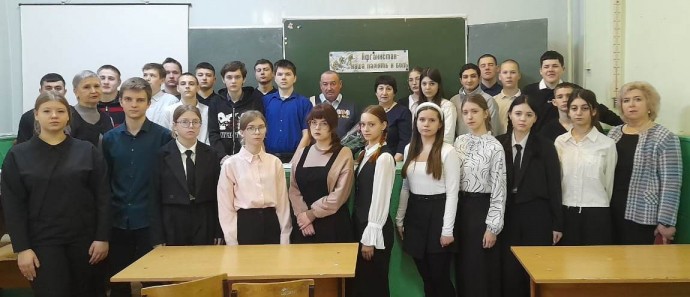 На встрече «Память возвращает нас в Афганистан» присутствовали обучающиеся 10 «А» класса (классный руководитель Частова Т.А.), 11 «А» класса (классный руководитель Демиденко Л.А.). Поляков Игорь, Сагаева Несси. Мартынов Максим, Антипов Федор читали трогательные стихи об Афганской войне.