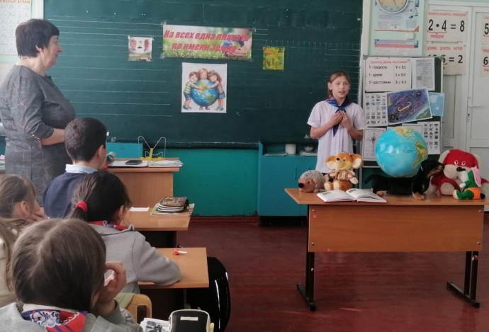 Из рассказа Хубуловой А.С. и показанных видеороликов ребята узнали о многообразии живой природы на нашей планете Земля, о правилах поведения в лесу, бережном отношении к растениям и животным, о Красной книге России и Орловской области.