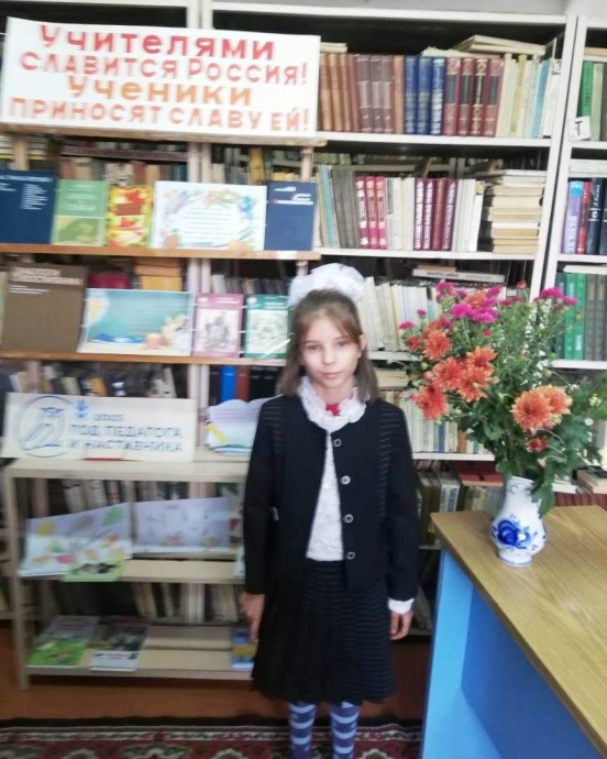 Голунская библиотека приняла участие в праздничной программе ко Дню учителя «Поклон земной учителям». Дети прочитали стихотворения: «Учитель! Труд твой кропотливый, с каким трудом еще сравнишь?» (Софья Морозова), « Учитель!» (Агафья Федорова). Стихотворение «Учитель» Натальи Кнушевицкой, тоже учителя по профессии, прочитала. Любава Кравченко.