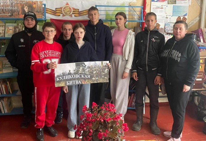 В ходе рассказа заведующей библиотекой Тереховой С.В. ребята погрузились в атмосферу русской воинской доблести, узнали о событиях, предшествовавших Куликовской битве, ее ходе, героях, имена которых сохранила история. Это было первое в нашей истории яркое проявление высокого духа и единства русских людей. Осознание своей национальной общности помогло русским войскам сохранить и защитить Родину, которая дороже жизни. Великое мужество проявили в Куликовской битве все русские воины и сам великий князь Дмитрий Иванович, получивший в ней ранение и почетное прозвище «Донской». Во время беседы ученики познакомились с подборкой исторической и художественной литературы, представленной на книжной выставке «Куликовская битва» и ответили на вопросы викторины «Поле ратной славы».