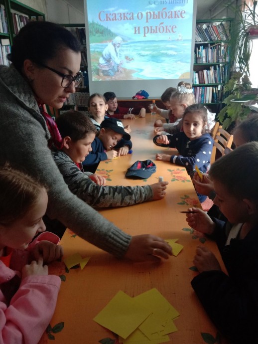Главный библиотекарь Н.В. Чибисова провела мастер-класс по изготовлению «золотой рыбки» в технике оригами.Молодцы ребята! Мы рады, что вы читаете, знаете и любите Пушкина!Наш Пушкин! Наш поэт! Наша отрада!Спасибо за любовь к родному слову.Мы этой встрече были очень рады.Твои стихи читать мы будем снова!Пушкин по-прежнему с нами, в душе каждого из нас, и в нашей памяти живут его удивительные строки, безграничная любовь к Отчизне, вера в добро, красоту и свободу.