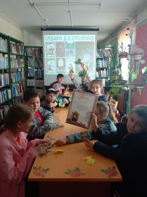 4 июня Пушкинский день в детской библиотеке прошел активно, весело, шумно. К нам в гости приходили ребята из школьного летнего лагеря. Отряды «Лучики» и «Веснушки». Библиографический обзор у книжной выставки «Всё о Пушкине" начался с простого вопроса: «Кто такой Пушкин?» Дети дружно отвечали, что Пушкин — это солнце русской поэзии!» Ребята с удовольствием посмотрели видеоролик в жанре кукольного мультфильма о жизни великого русского поэта. Активно отвечали на вопросы видеовикторины «Пушкинское Лукоморье» и отгадывали загадки по сказкам Пушкина, перевоплощались в сказочных героев и получили не только заряд положительных эмоций и прекрасное настроение, находясь в прохладе читального зала, но и Грамоту в копилку своих отрядов и памятные сувениры!