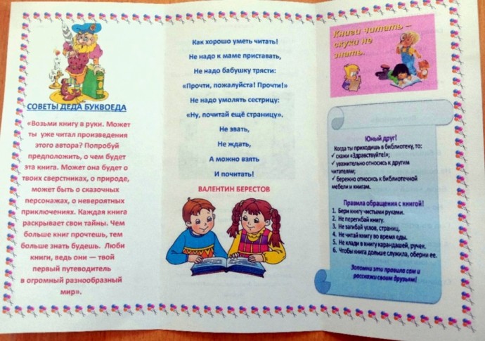 Первое знакомство с историей нашей страны можно начать с книг: «Наша Родина – Россия», «Рассказы о Родине», «История России в рассказах (для начальных классов)», «Герб. Гимн. Флаг России (справочник младшего школьника)».Серия «Моя первая энциклопедия» поможет раскрыть увлекательные тайны и загадки окружающего мира: времена года, разнообразие растений и животных, географические открытия, эксперименты и достижения в области науки и техники, удивительные и выдающиеся люди нашей страны, чудеса Света и просторы Космоса – все это ждет вас на страницах детских энциклопедий.А разработанные библиотекарями методические рекомендации по развитию детского чтения «Растим читателя вместе» и памятки-закладки «Юному Читайке » помогут развитию читательского интереса у детей, привлечению всех членов семьи к совместному чтению.