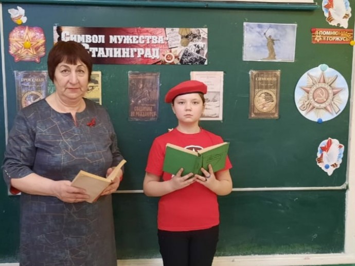 Работники Новосильской центральной библиотеки в рамках Всероссийской онлайн-акции «200 минут чтения. Сталинграду посвящается» провели урок мужества «Символ мужества – Сталинград». Учащиеся 5 класса Новосильской средней школы (классный руководитель Алехина Т.Н.) читали отрывки из произведений о Сталинградской битве.