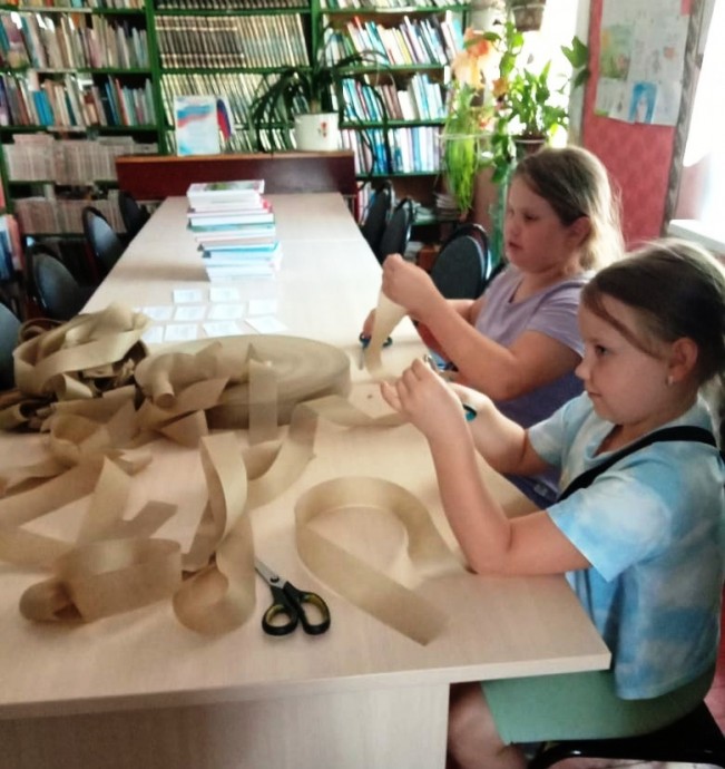 Работники и читатели Новосильской центральной детской библиотеки тоже не остаются в стороне. Письма, рисунки, видеопоздравления для участников СВО, заготовка материала для плетения маскировочных сетей… Сегодня наши постоянные юные читатели, Алентьева Арина и Букреева Лиза изъявили желание помочь заведующей ЦДБ Колгановой Э.А. нарезать ленточки для плетения маскировочных сетей. Девочки отнеслись к этому занятию очень ответственно и с душой.