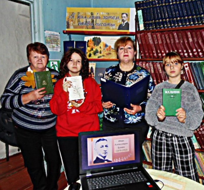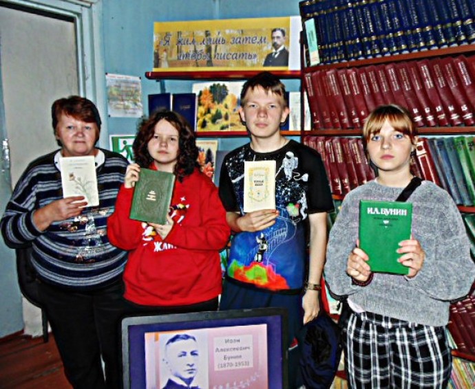 На данном мероприятии заведующая библиотекой Васильчикова Людмила Александровна рассказала о жизненном и творческом пути И.А. Бунина, о его такой непростой и трагической судьбе. Гости мероприятия были ознакомлены с книжной выставкой, посмотрели мультимедийную презентацию о его жизни и творчестве, приняли участие в чтение бунинских стихов. Вечер-портрет дал возможность участникам мероприятия узнать много нового и интересного об этом замечательном писателе, познакомиться поближе с его литературным наследием, которое учит видеть прекрасное в мире, в людях, призывает к борьбе за совершенство, воспитывает ненависть к фальши. Бунин оставил нам великое чудо – трепетное слово о России.