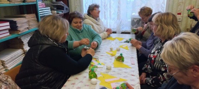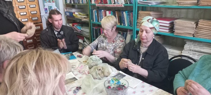Большой блок был посвящен народным промыслам Орловщины: резьбе по дереву, домовой резьбе, изготовлению мебели из лозы, ковроткачеству, плетению мценского кружева, созданию плешковской и чернышенской игрушек из глины, изготовлению чернолощеной посуды из распоповской глины, плетению из соломки, пеньки, вышивке в стиле орловского списа, созданию ливенских гармошек. Гости приняли участие в наших мастер – классах по изготовлению народной куклы «Сорока» и изготовлению чернышенской игрушки (кукушка).Наши гости посетили выставку глиняной игрушки в Новосильском краеведческом музее, где представлено 28 промыслов России — около 300 игрушек.В библиотеке работала фотозона, где каждый мог сделать фото.Закончилось мероприятие праздничным чаепитием. Мы благодарим всех участников, гостей Библионочи, сотрудников краеведческого музея, помогавших в организации и проведении Акции, и нашего постоянного спонсора – индивидуального предпринимателя В. Казарову.