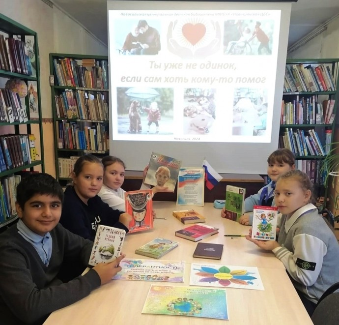 Ребята познакомились с понятием «толерантность» или терпимость, уважение, благосклонность к иному образу жизни, мышлению, поведению, обычаям. Узнали о благотворительности, волонтерстве и их роли в истории и современном обществе. Все участники мероприятия согласились с тем, что мы тоже можем поделиться чем-то, например, со сверстниками своими книгами, игрушками, сделать красивее свой класс и школу, сделать подарок для участников СВО, сказать добрые слова родным и близким людям. Ведь если человек добр и щедро делится этой добротой с другими, то он часто больше приобретает, чем теряет. Главное – не оставаться равнодушными! И, действительно, тогда ты уже не одинок, если сам хоть кому-то помог!