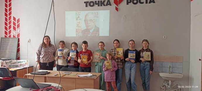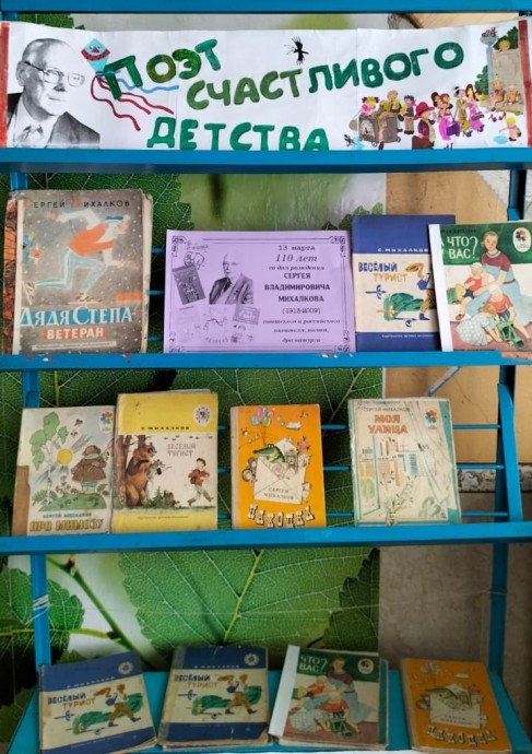 А в сельской библиотеке оформлена книжная выставка «Поэт счастливого детства». В начале мероприятия прозвучала весёлая «Песенка друзей» настихи С.Михалкова. На слайдовой презентации дети увидели портрет поэта, обложкии иллюстрации его книг. Кратко познакомились с биографией С.В.Михалкова, услышалиинтересные факты из жизни и творчества поэта, узнали о том, что СергейВладимирович является автором гимна нашей страны, и что ему принадлежат слова,высеченные на плите, лежащей на могиле неизвестного солдата :«Имя твоёнеизвестно, подвиг твой бессмертен»