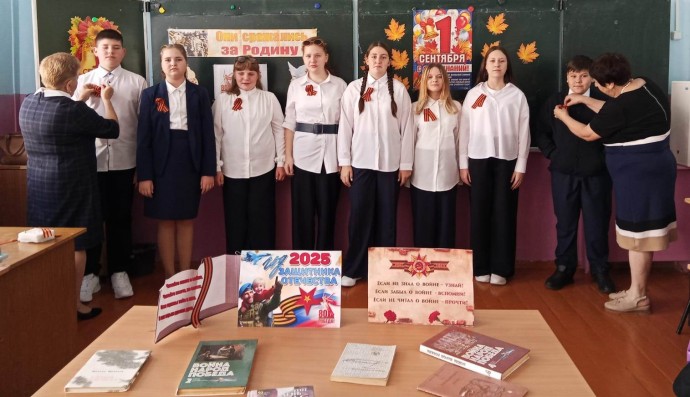 1 сентября в рамках «Разговора о важном» работники Новосильской центральной библиотеки провели патриотический час «Войны священные страницы» для учеников 7 «В» класса Новосильской средней школы (классный руководитель Деменина Л.В.).