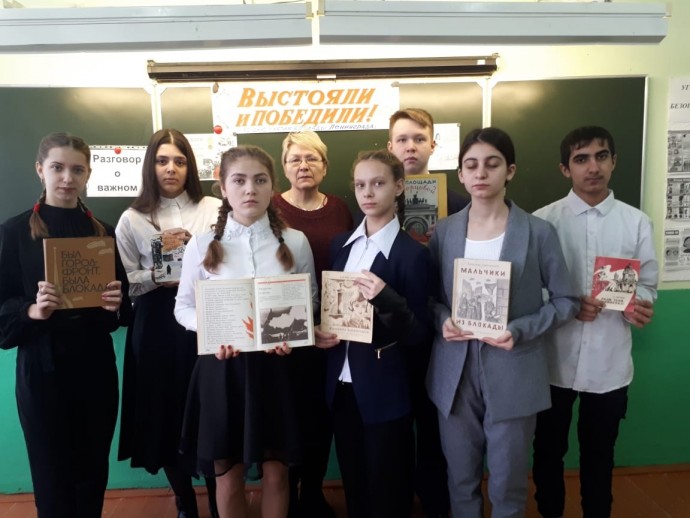 В рамках цикла «Разговор о важном» работники ЦДБ провели совместно склассными руководителями 8 Б (Т.И. Чумакова) и 8В (Т.А. Частова)классов часыинформации «Выстояли и победили» и «900 дней блокады».Ребята узнали о героической стойкости жителей блокадного Ленинграда и смелостии мужестве советских воинов, разорвавших фашистское кольцо блокады.