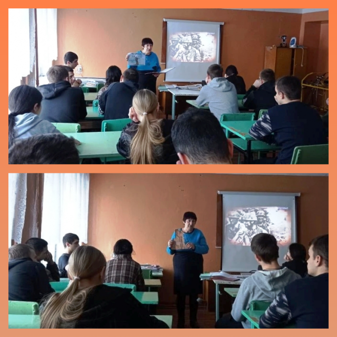 На уроке мужества «Здесь Родиной каждому был Сталинград», организованном работниками Новосильской центральной библиотеки для студентов техникума агробизнеса и сервиса вспомнили героев, защитников Сталинграда – сынов разных народов России.